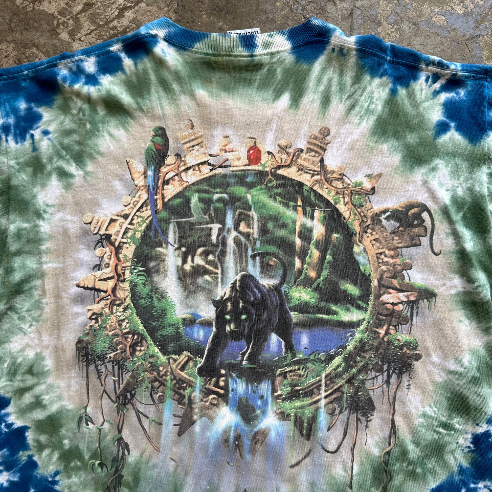 1990s Black Panther Liquid Blue tie dye tshirt